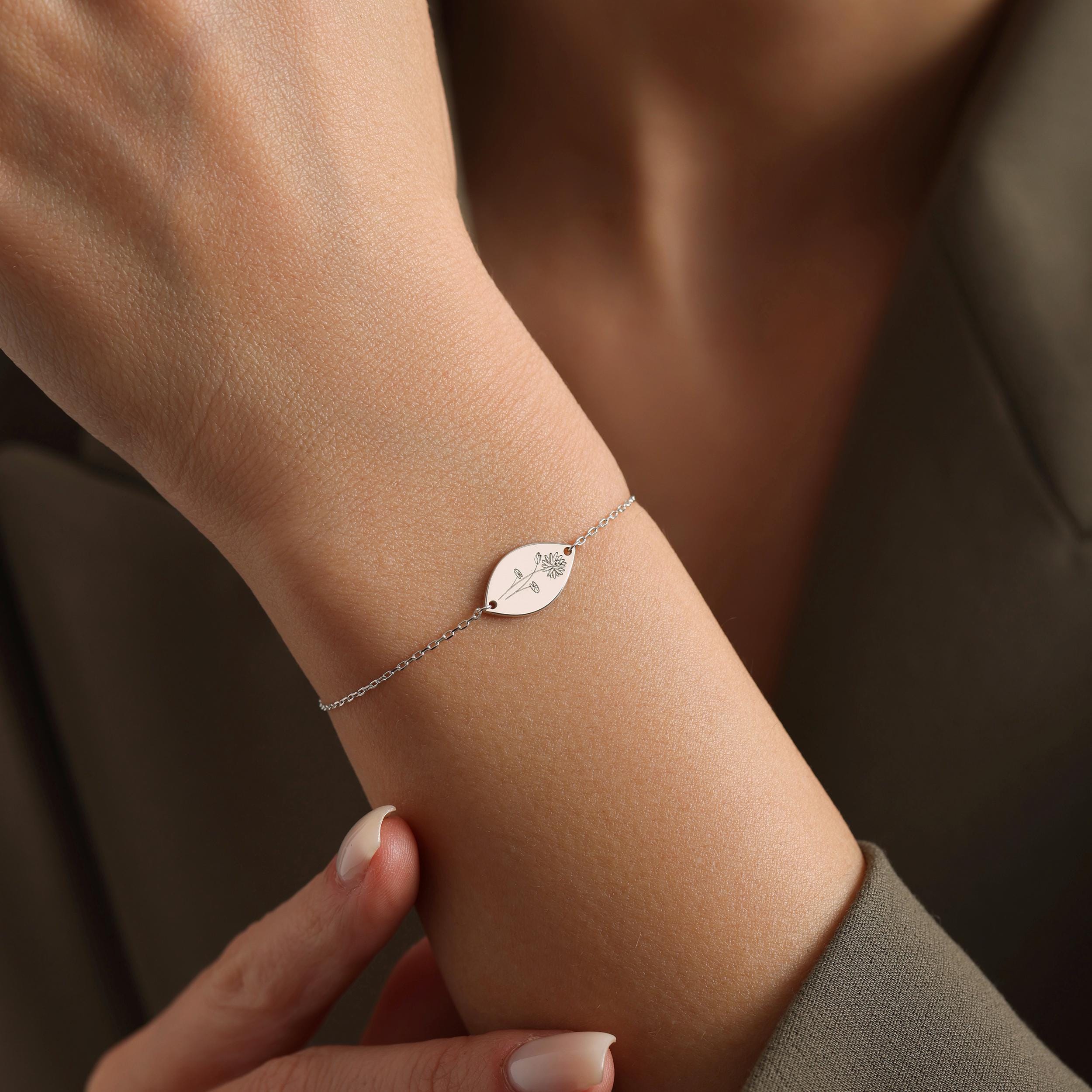 Sterling Silver Birth Flower Bracelet: Personalized Floral Jewelry