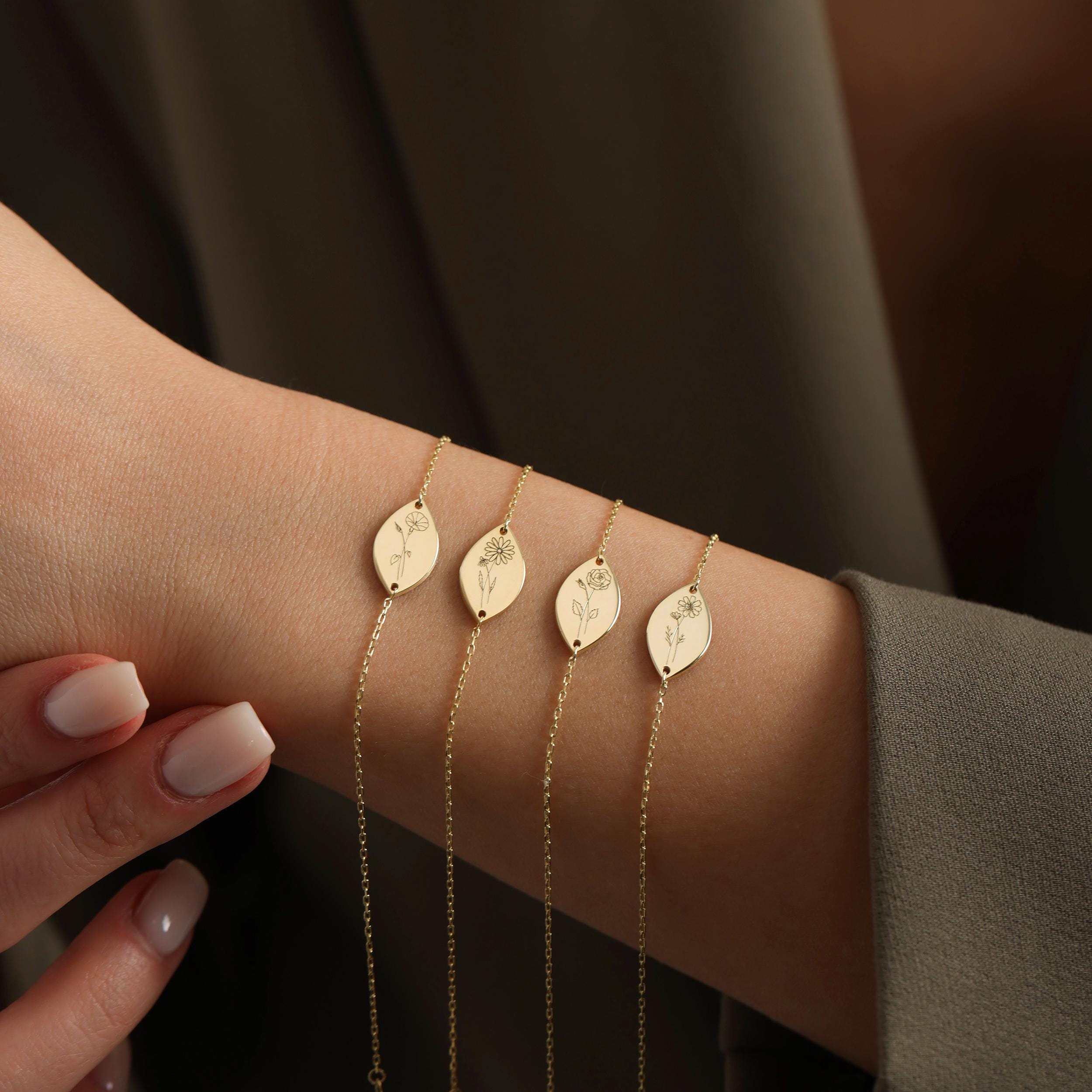 BirthFlower Bracelet, Birth Flower Bracelet, Gift for Her, Mother's Day Gift, Gift for Wife, Gift for Mom, Cristmas Gift