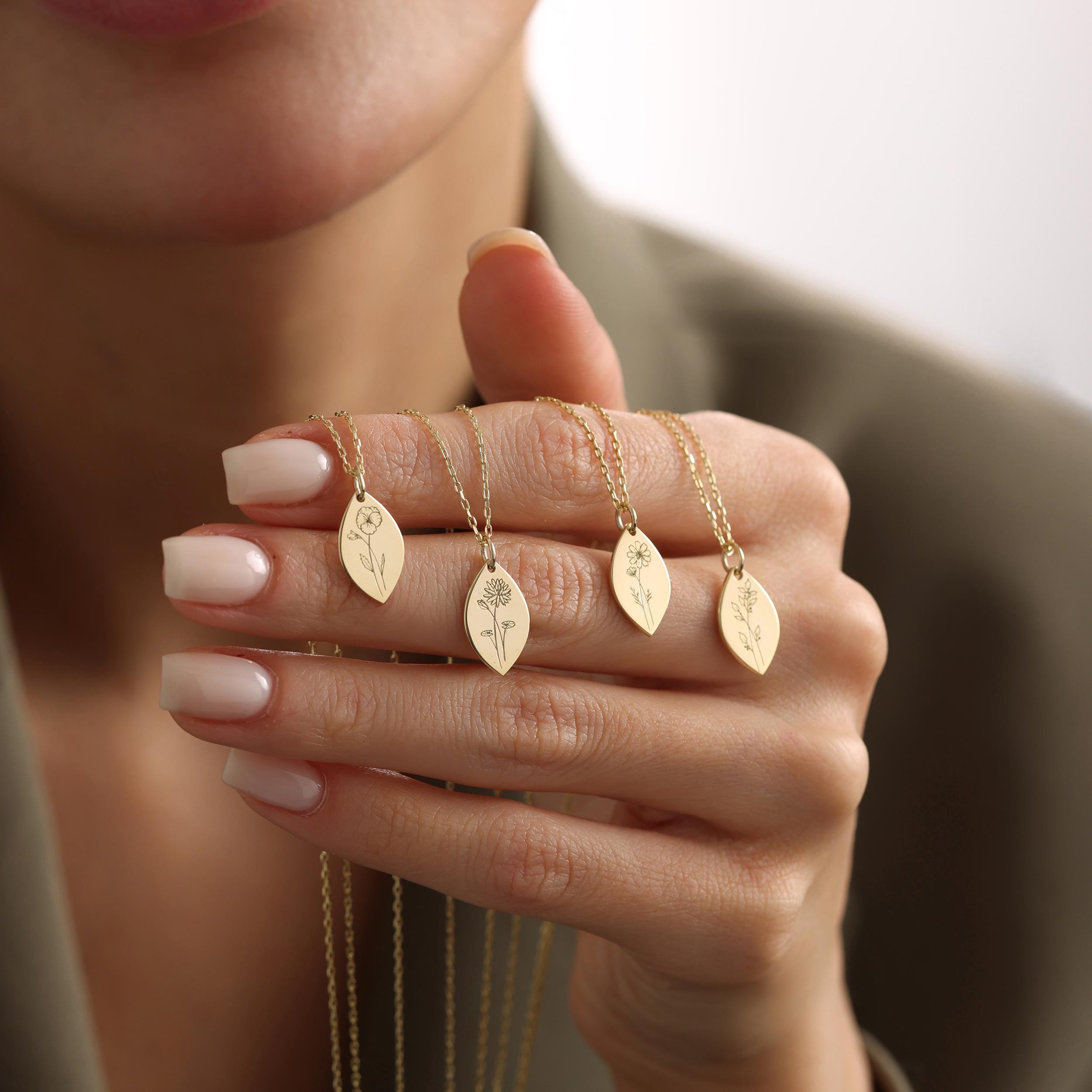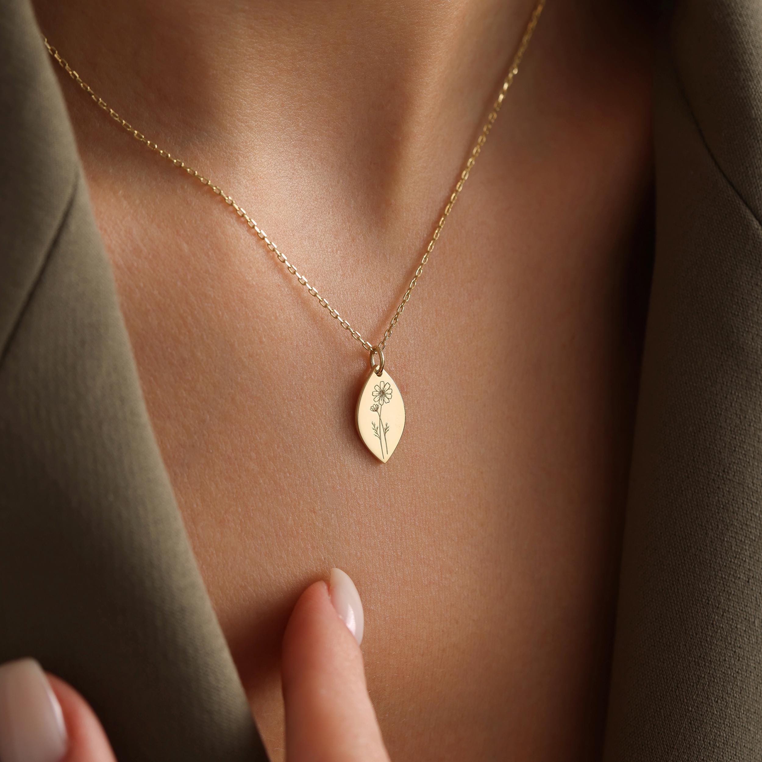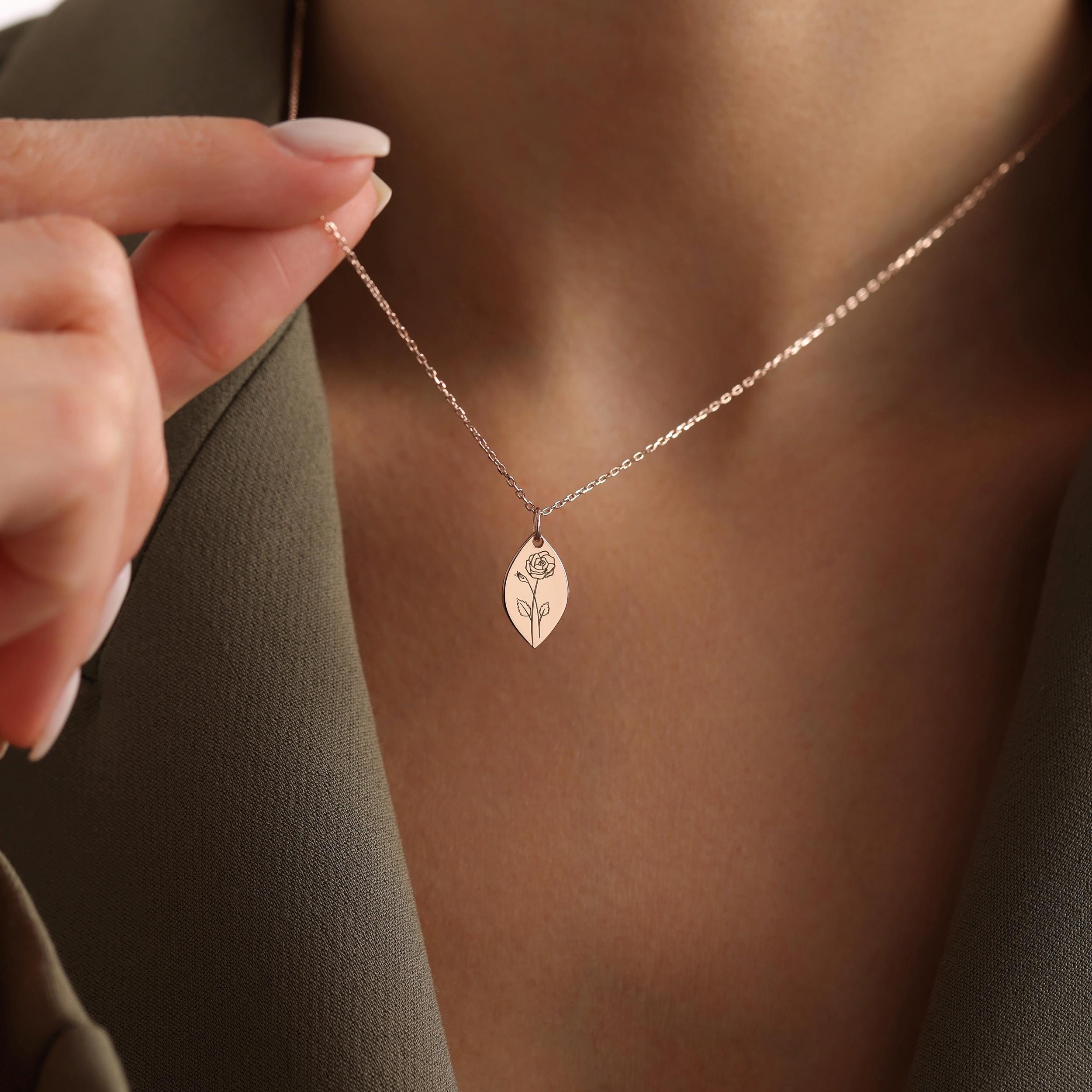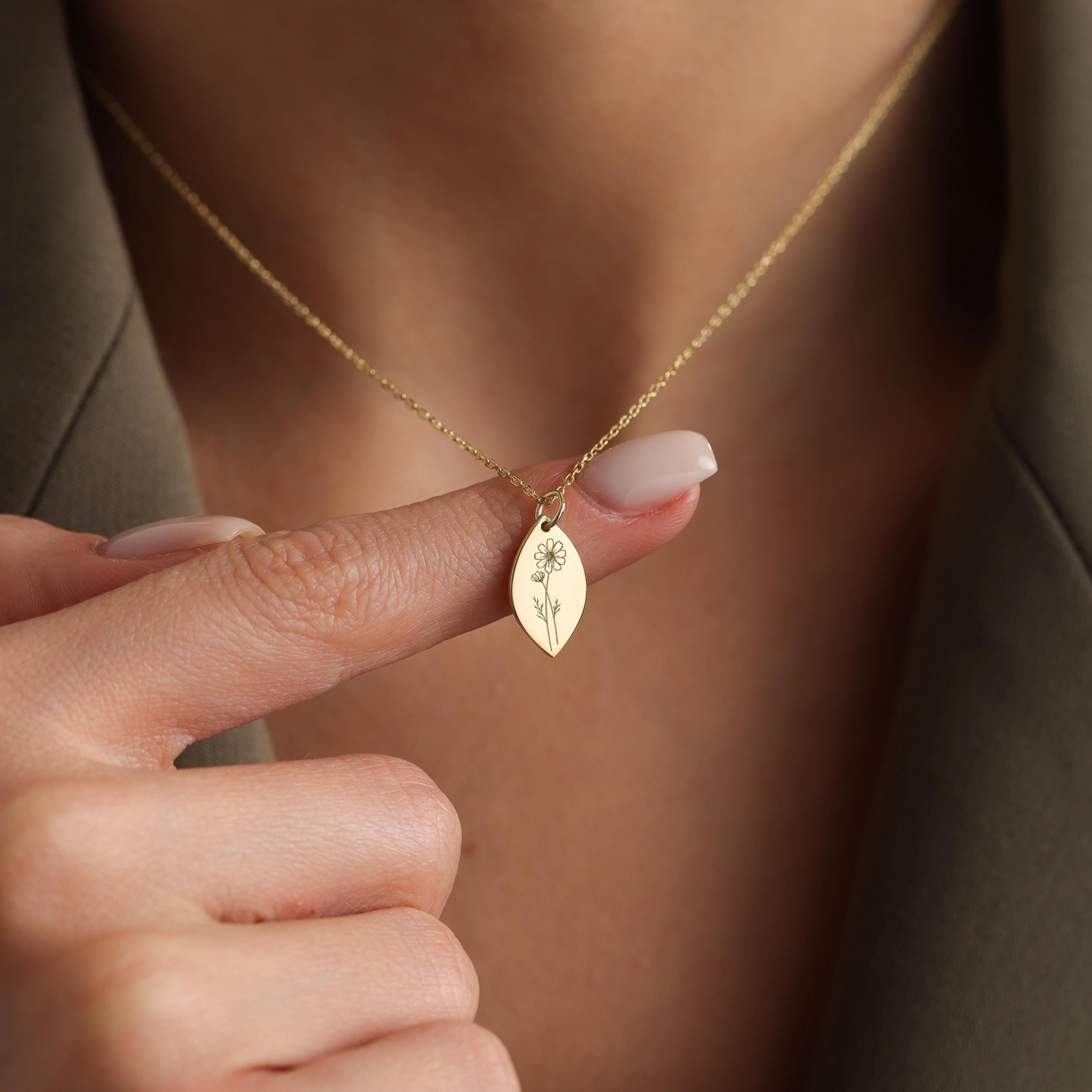 Personalized Birth Flower Engraved Necklace, Birthflower Necklace, Gift for Her, Mother's Day Gift, Gift for Wife, Gift for Mom, Cristmas Gift