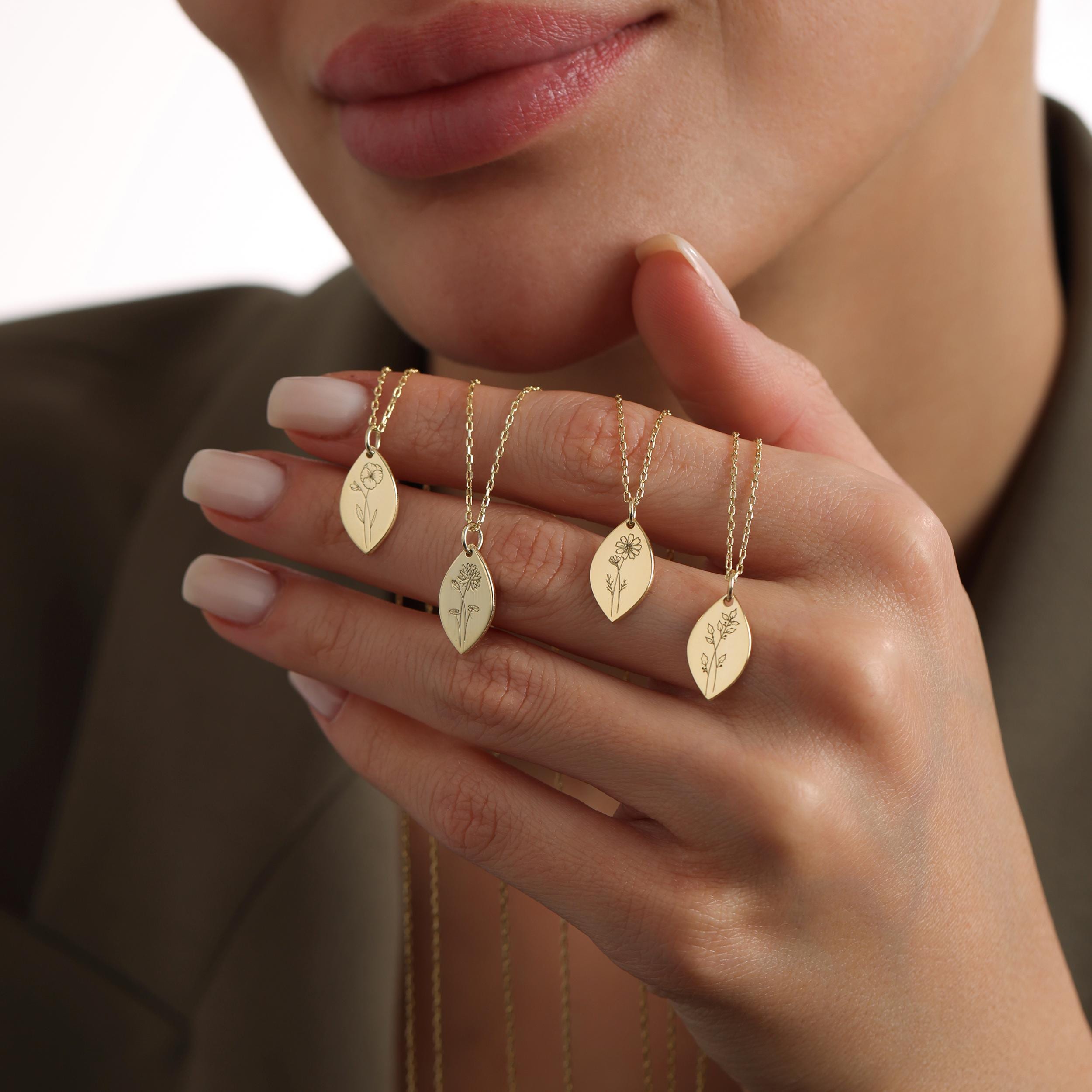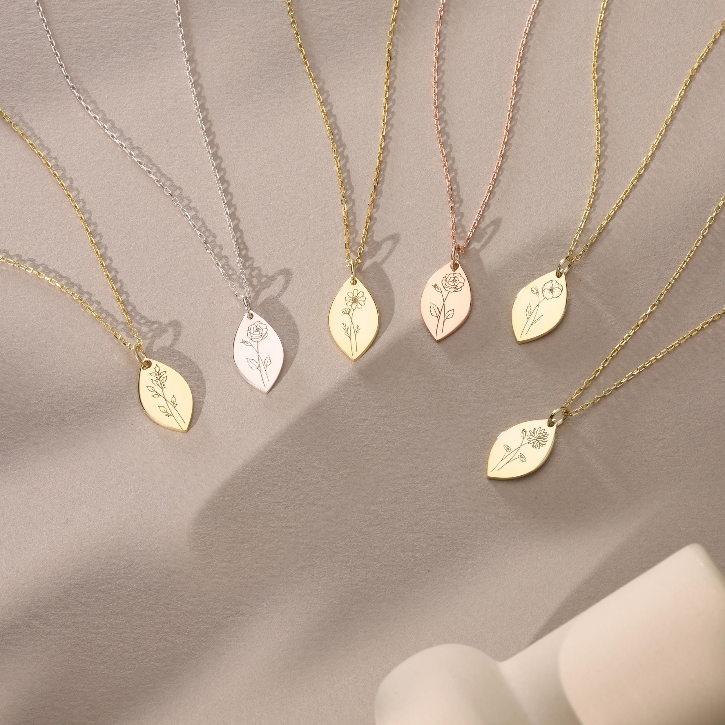 ► Custom Birth Flower Engraved Necklace