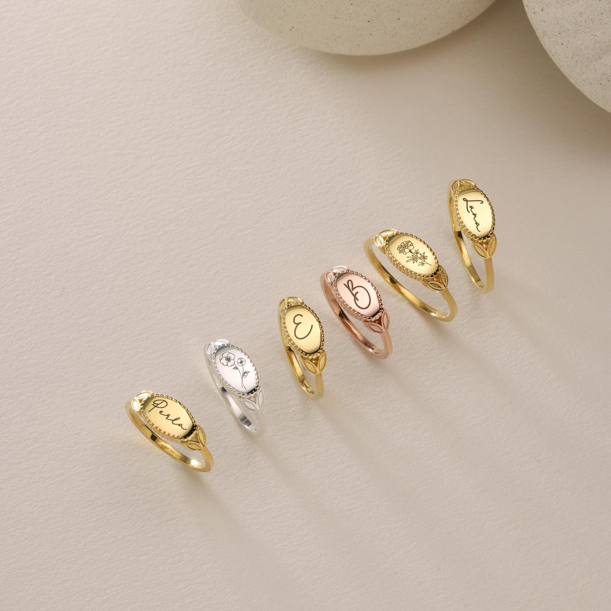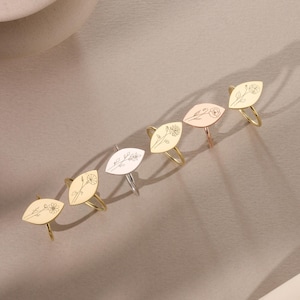 Custom Name Ring, 14K Gold Plated Birthflower Ring, Birthday Gift for Her, Christmas Gift, Gift for Mom